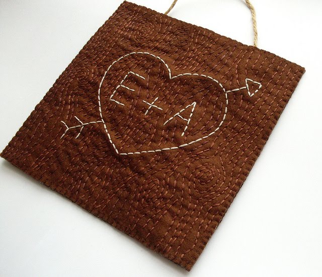 Remove the large stitches and use the embroidered square as a template to cut a backing piece of matching dark brown felt.